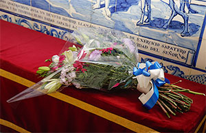 Consejeros, técnicos y jugadores, con los capitanes Domínguez y Quintana al frente, participaron en la tradicional ofrenda...